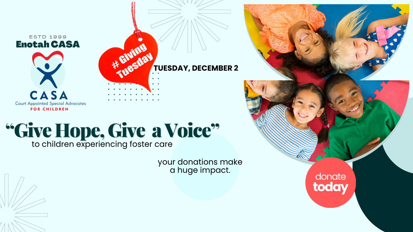 - Consider Enotah CASA as a beneficiary of your donor-advised fund.